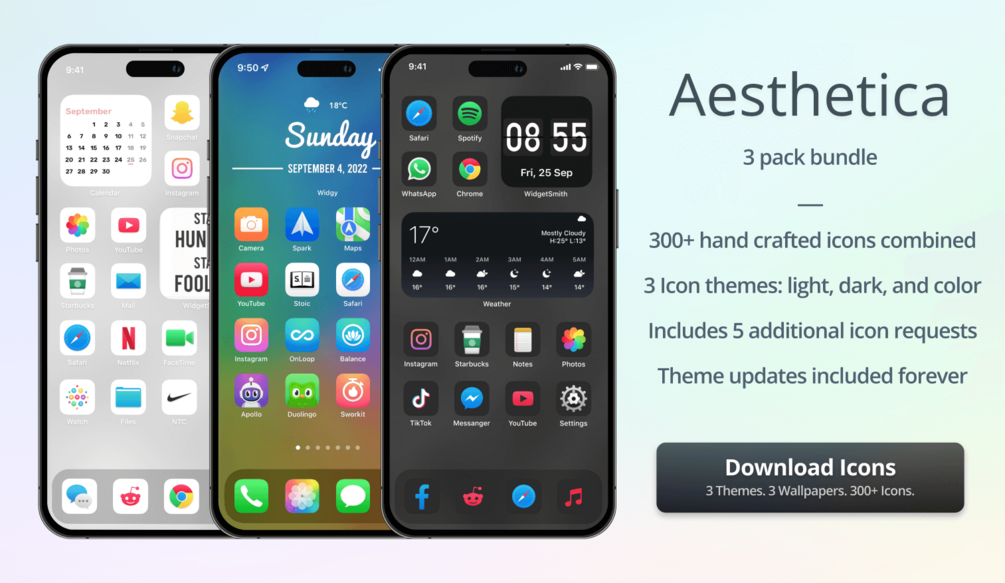 Aesthetica iOS app Icons - 3 Theme Bundle (Light, Dark, Color)
